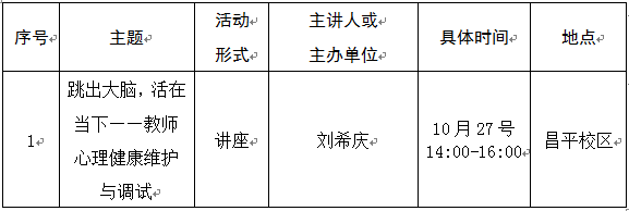 为了更有针对性的解决教师在日常生活和工作中的压力和心理困惑,学校心理健康教育与咨询中心将向各位老师开放。