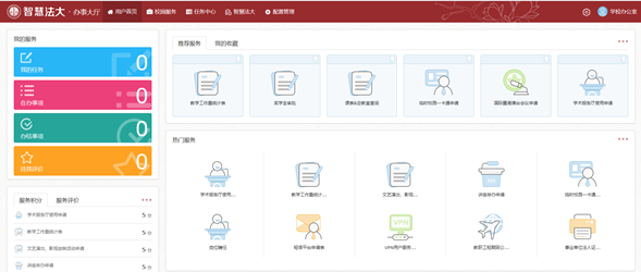 1.登陆智慧法大(v.cupl.edu.cn),进入办事大厅。