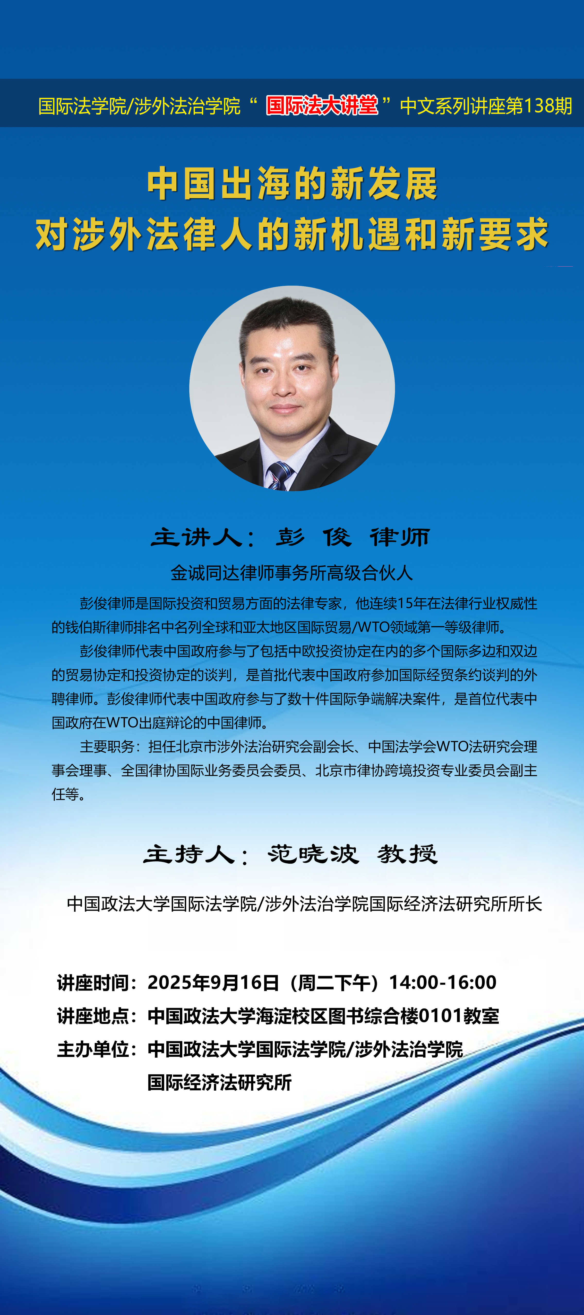 讲座名称:中国出海的新发展对涉外法律人的新机遇和新要求