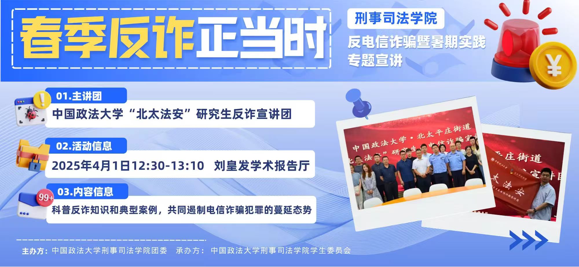 现将刑事司法学院春季学期反诈讲座安排通知如下:
