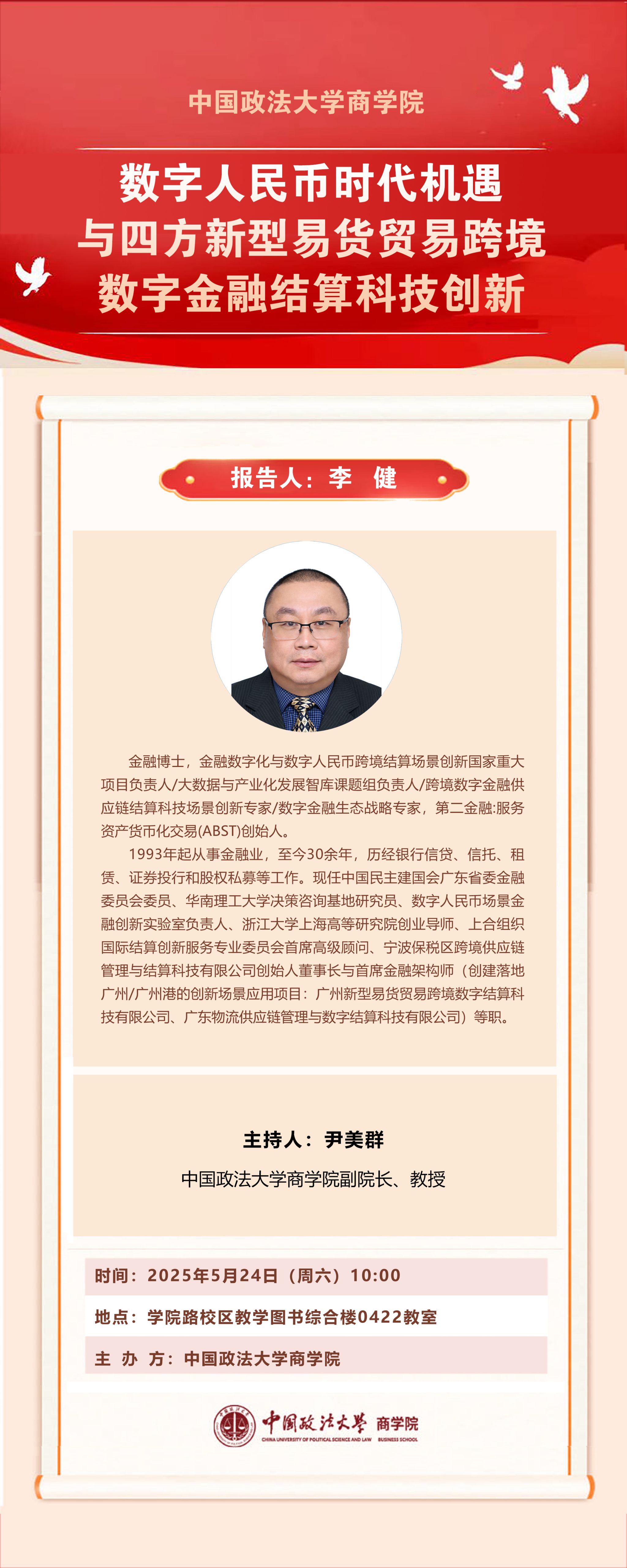 现将“数字人民币时代机遇与四方新型易货贸易跨境数字金融结算科技创新”讲座信息通知如下,欢迎感兴趣的师生积极参加: