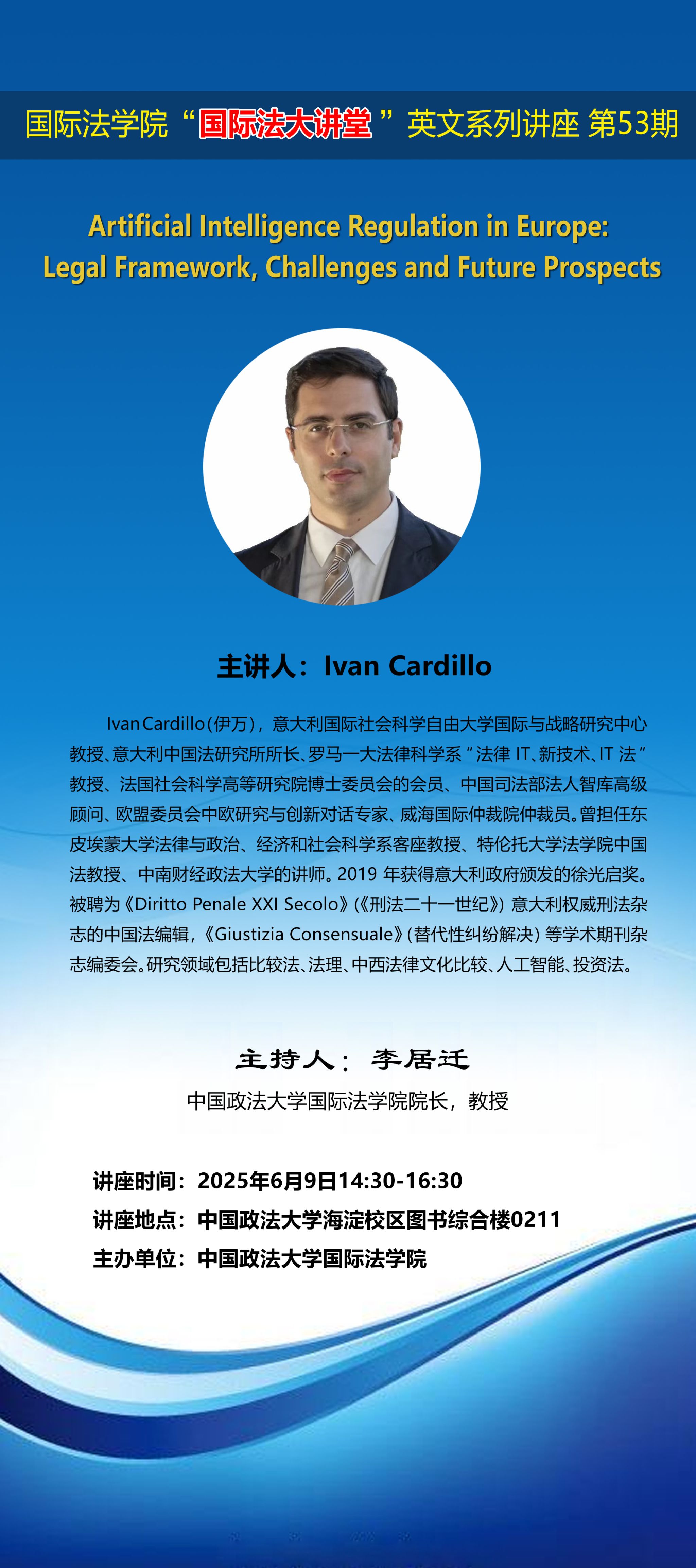 讲座主题:欧洲人工智能监管:法律框架、挑战与未来前景