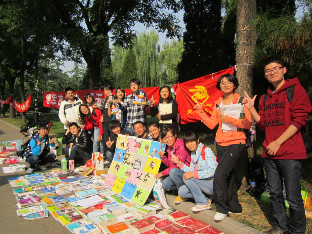 在灵心人的圈子中,有一个不成文的规定,对外介绍灵心时不可以说成兴趣社团,而是公益社团。的确,虽然灵心主要是手语教学,但它的目的绝不仅仅是学会手语能和聋哑人沟通那么简单。五年来,灵心一直在通过爱心义卖的方式为聋哑儿童筹集善款。义卖的东西都是灵心人通过“刷寝”得到的,一年两次在图书馆背面的小路上进行“二次营销”,筹到的钱纳入义卖基金账户,年末和节日期间再以现金或物资的形式给康复园送去。