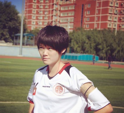 傍晚时分,柔和的斜阳散射在绿茵场上,场边法大女足的姑娘们席地而坐,刚刚结束训练的她们,一边放松聊天,一边观察着仍在训练的其他球队,并不时对他们技术动作评论几句。其中,一个留着清爽短发的女孩,不时一句妙语,或振奋人心,或引人思考……她就是法大女足队长——李碧霞。