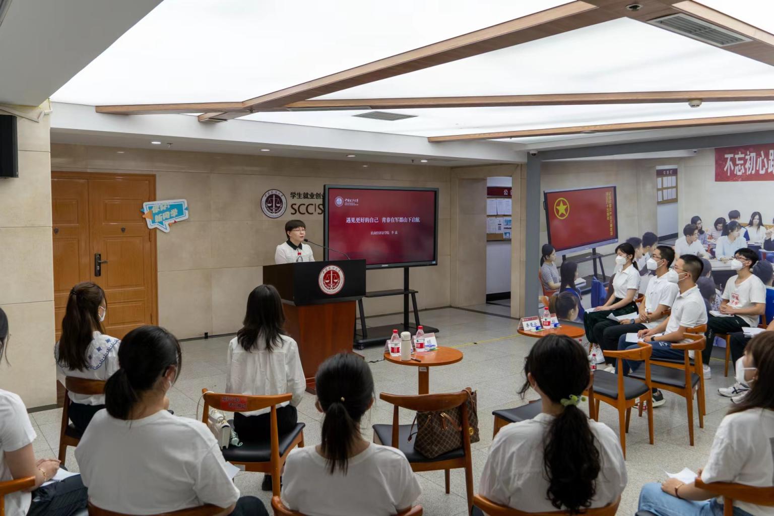 民商经济法学院教授李蕊面向本科新生代表做了《遇见更好的自己 青春从军都山下起航》主题讲座。李蕊谈到,作为2022级法大人,应当:学会学习,要珍惜法大丰富的教学资源、提升自我学习的能力、在实践中提高综合素质;学会生活,要培养兴趣爱好、保持身心健康、在取长补短的同时善待他人;学会规划,要建立起未来的职业选择和规划、脚踏实地在追梦路上前行。