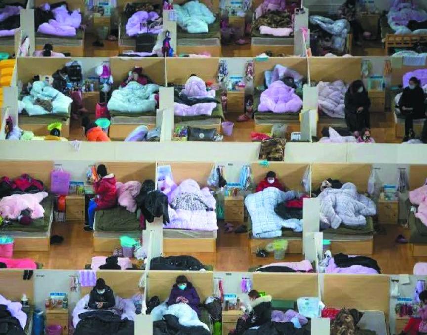 (2月17日,患者在武汉体育中心方舱医院休息)