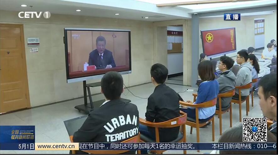中国教育电视台(CETV-1)《全国教育新闻联播》报道我校师生学习“纪念五四运动100周年大会”