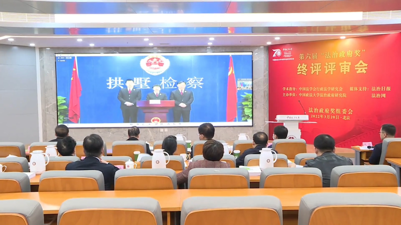 3月20日上午,第六届“法治政府奖”终评评审会在我校举行。来自全国各地的35家入围单位代表、终评评审会评委和多家新闻媒体以线上线下同步的方式参加会议。