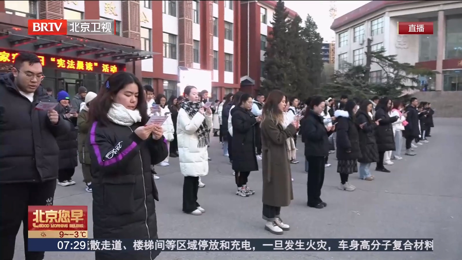 12月4日,第十个国家宪法日当日,我校师生代表齐聚端升楼前广场参加第十个国家宪法日“宪法晨读”活动。