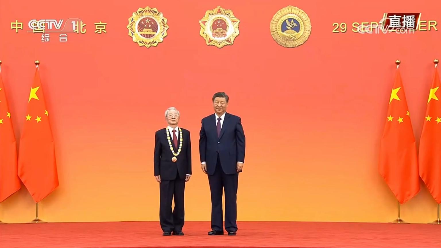 9月29日,中华人民共和国国家勋章和国家荣誉称号颁授仪式在人民大会堂隆重举行。中共中央总书记、国家主席、中央军委主席习近平向国家勋章和国家荣誉称号获得者颁授勋章...