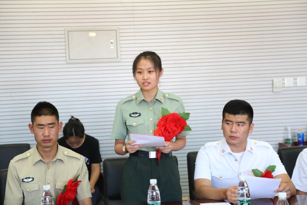 退伍士兵代表李猛、朱倩倩先后发言,他们谈到,两年的军旅生活,使他们提升了思想认识、增强了纪律观念、培养了团队精神、造就了健康体魄,这些将是伴随他们一生的财富。入伍新兵代表黄中原在发言中表达了对学校的感激和对军营生活的向往,他说选择参军入伍是大学生承担社会责任的第一步,到军营后,将尽快转变角色,坚决服从命令、听从指挥、苦练本领,早日成为一名优秀的人民子弟兵,绝不辜负部队、学校和家人的期望,为法大争光。