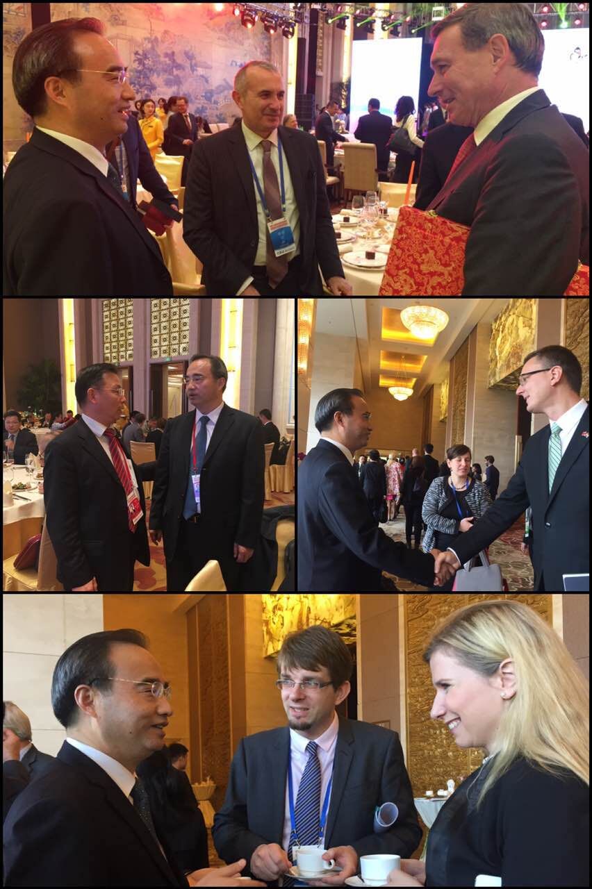 与会期间,黄进分别与欧盟驻华大使史伟,中国驻欧盟使团教文处公参李建民,捷克教育、青年、体育部部长卡特日娜·瓦拉霍娃、副部长达娜·普鲁迪科娃,匈牙利人力资源部副部长兼国务秘书本奇·里特瓦瑞,罗马尼亚驻华使馆文化参赞鲁贝安等进行亲切交谈。黄进提到,欧盟国家一直是我校国际交流与合作的重点,近年来,我校与欧盟国家,特别是中东欧的合作与交流日益紧密,合作形式多样,已与欧盟28个成员国中的21个国家的高校建立了合作,含中东欧16国中的6个国家——罗马尼亚、波兰、捷克、匈牙利、克罗地亚、以及斯洛文尼亚。法大还接待了众多欧盟地区政要来访,包括欧盟委员会前任主席巴罗佐、欧盟委员会司法、消费者与性别平等事务委员薇拉·尧罗娃、意大利参议长皮耶罗•格拉索等。此外,2006年至今,通过学校的高端平台——大使论坛,15位欧盟及欧盟各国驻华大使应邀来校访问并发表演讲。