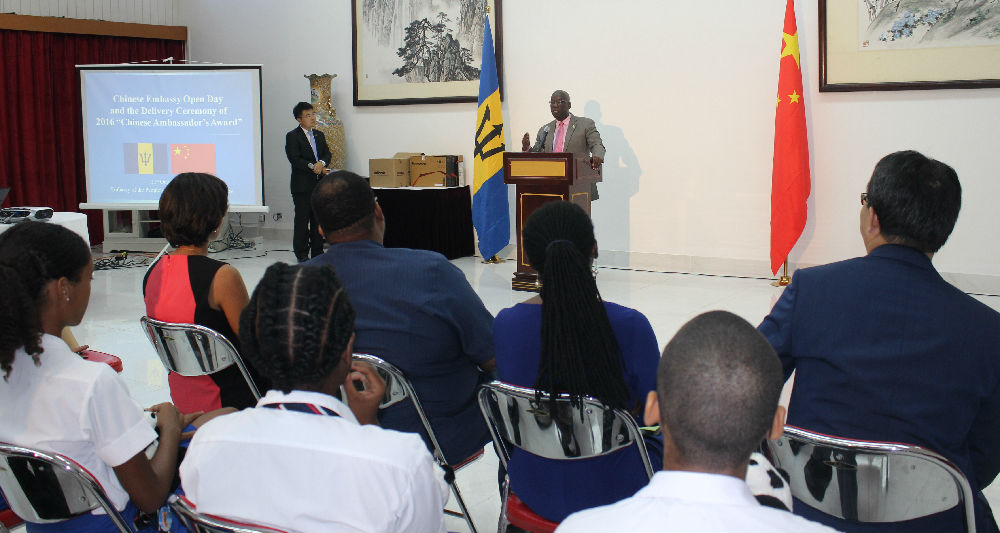 近日,我校共建巴巴多斯孔子学院助力中国驻巴巴多斯大使馆举行“大使馆开放日”活动,中国驻巴大使王克、巴教育部长罗纳尔德·琼斯(RonaldJones)、外交和外贸部代理常秘大卫·布尔布利亚(DavidBulbulia)、西印度大学凯夫希尔校区校长代表简尼斯·贝德诺克(JeaneseBadenock)、西大凯夫希尔校区孔子学院中外方院长及3所孔院开设汉语课的公立中小学校长、师生代表等70余人出席。