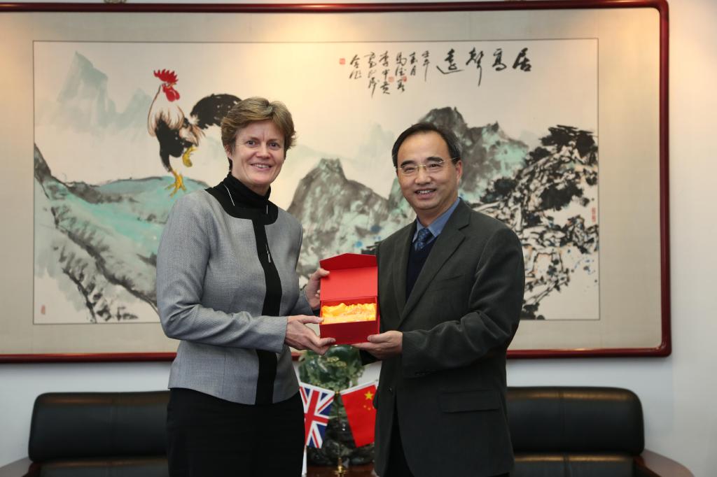 11月21日下午,校长黄进在我校昌平校区亲切会见英国驻华大使吴百纳女爵士(Dame Barbara Woodward DCMG OBE)一行二人。