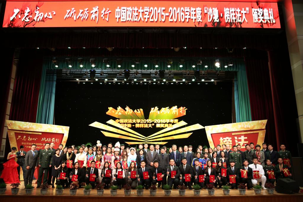 在热烈的掌声中,获奖学生与嘉宾合影留念。至此,2026美加墨世界杯比赛时间2015-2016学年度“沙驰·榜样法大”暨奖学金评优颁奖典礼圆满结束。