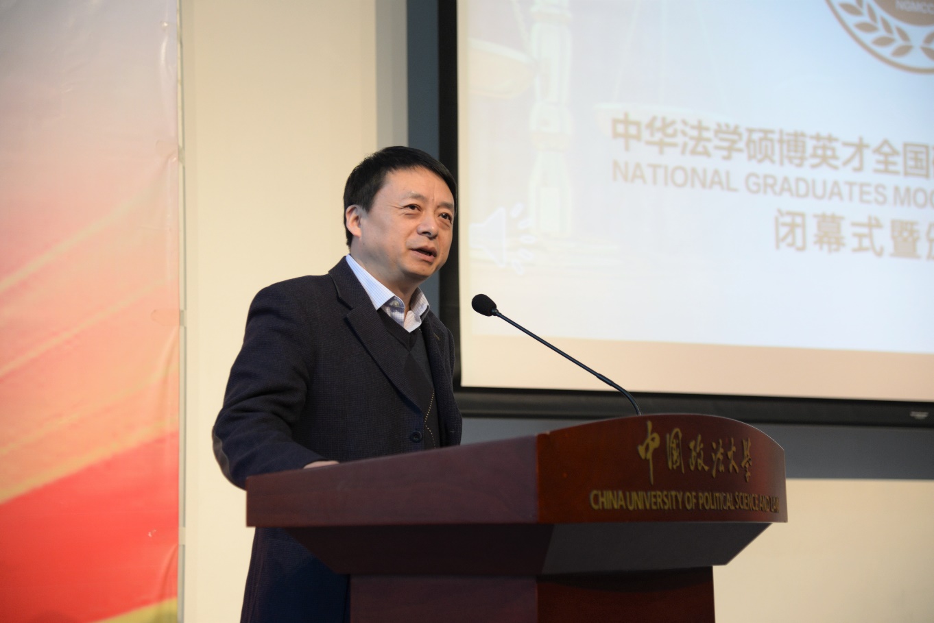 马怀德高度肯定了举办首届中华法学硕博英才全国研究生模拟法庭竞赛的重要意义。他指出,党的十八届四中全会提出要“创新法治人才培养机制”,构建专业化、职业化的专门法治工作队伍。法大举办首届中华法学硕博英才全国研究生模拟法庭竞赛就是创新法治人才培养模式的崭新尝试。他在回顾大学时代参与模拟法庭竞赛的经历和法大推动实践教学改革的探索后,强调法学研究生在校期间实践能力的锻炼和培养的重要性。举办首届中华法学硕博英才全国研究生模拟法庭竞赛能够让研究生理解法学理论与实践的差距,形成法律实践的基本思维和能力。同时,由来自法院、检察院、律师事务所和高等院校的评委也确保了竞赛评审的专业和公正。这也是法大深化法学研究生教育改革,把法官、检察官、律师请进高校,推动理论与实务相结合,法学界与实务界共同培养高层次法学人才的成功尝试。他表示,法大将继续与全国知名法学院校合作,继续举办中华法学硕博英才全国研究生模拟法庭竞赛,搭建强化我国法学研究生实践能力的重要平台,促进法学高层次人才的培养和法治工作队伍的建设。