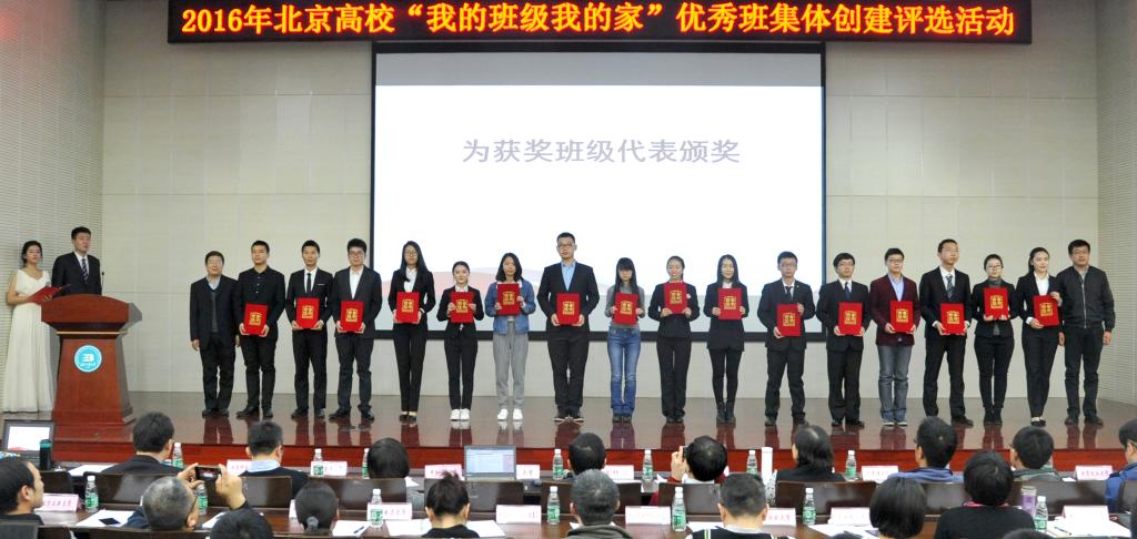2016年12月20日,2016年北京高校“我的班级我的家”十佳班集体创建答辩评选工作在北京工业大学举行,我校2015级中美班获得了2016年北京高校“优秀示范班集体”的荣誉称号。我校学生工作部副部长王彤出席并担任评委,比较法学研究院分团委副书记杨明荃带领入围班级学生代表参加本次活动。