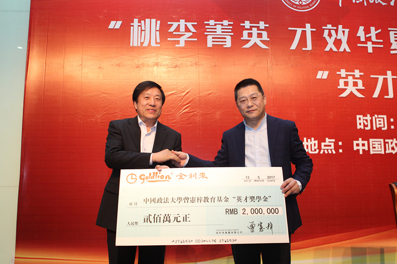冯世勇首先代表法大,对曾宪梓先生和金利来集团表示由衷的感谢和崇高的敬意。他说,曾宪梓先生是我国著名的爱国企业家,对祖国有一颗拳拳报国之心,老先生十分关注法大的教育事业。1993年3月31日,曾宪梓先生为法大捐款100万元;2007年,金利来集团第二次捐款200万元;今年,金利来集团再次捐款200万元,奖励法大品学兼优的学子。他指出,曾宪梓先生的创业经历和回馈社会、回报祖国的精神始终激励着我们。奖学金是一种物质奖励,更是一种精神的鼓舞。希望法大的同学以曾宪梓先生为榜样,努力成为品德优良、学识丰富、具有法治思维和实践精神、更有社会责任感的一代新人。