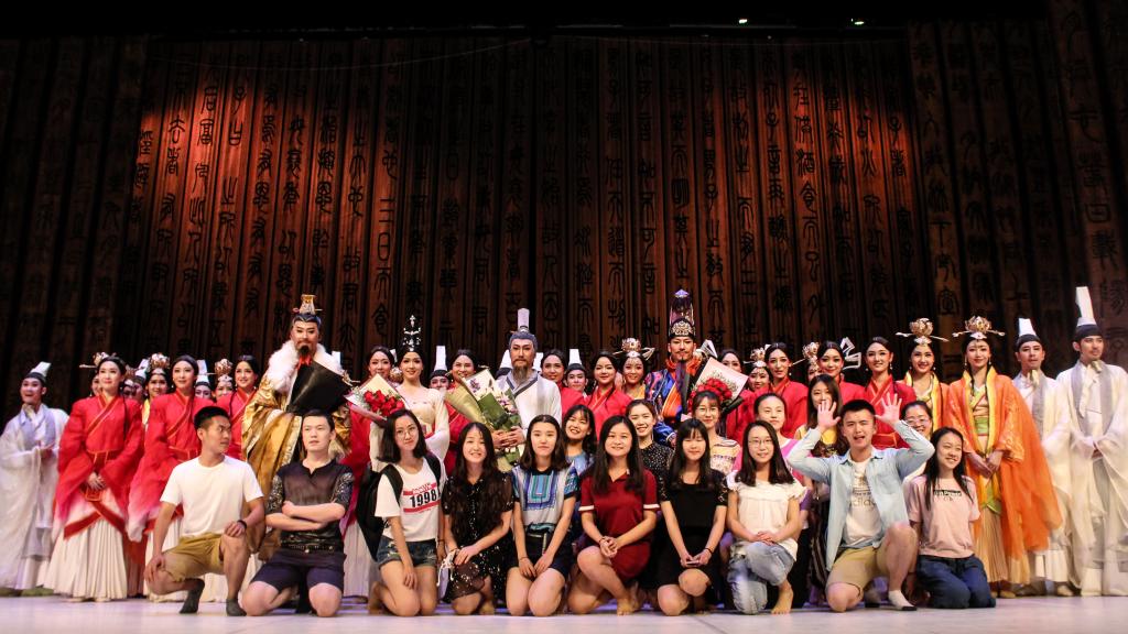 “发奋忘食,乐以忘忧,不知老之将至云尔……”在该剧尾声,三千弟子吟诵的《论语》声声朗朗,那诵读声延续了千年,浸入中华儿女的血脉之中。21时许,四名主演带领全体演员走到台前,鞠躬谢幕,演出最后在学生献花中落下帷幕。