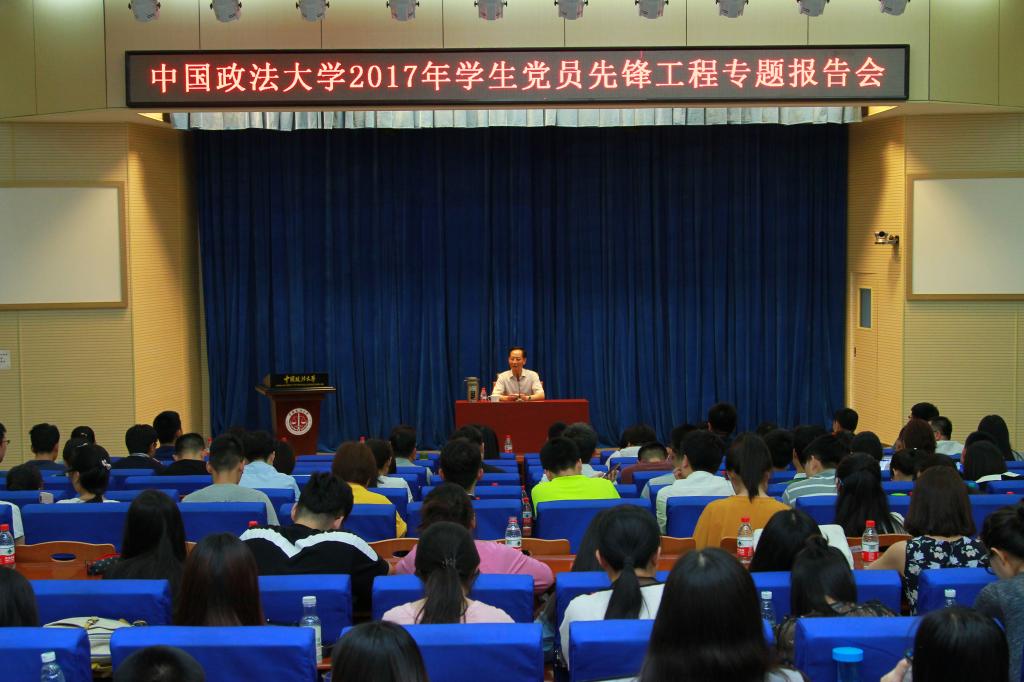 6月8日,我校在学院路校区综合科研楼学术讲堂举行了2017年学生党员先锋工程党支部书记专题培训班开班仪式。党委书记石亚军应邀为培训班学员做了以“深入学习习近平总书记考察法大重要讲话精神”为主题的第一堂专题报告。全校本科生、研究生党支部书记近200人参加了培训。报告会由党委副书记、纪委书记胡明主持。