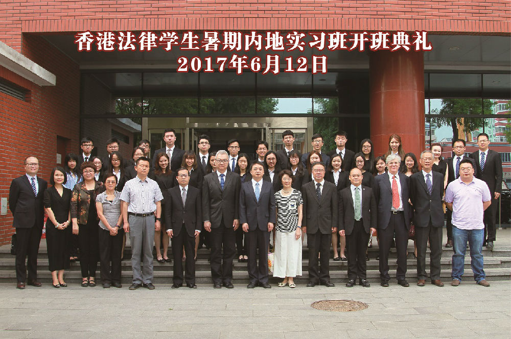6月12日上午,2017香港法律学生暑期内地实习班开班典礼在我校学院路校区举行。我校副校长马怀德、全国人大常委会香港基本法委员会巡视员潘小达、国务院港澳事务办公室法律司副司长奚俊坚、香港中联办法律部副部长刘春华、教育部港澳台事务办公室常务副主任赵灵山、最高人民法院研究室港澳司法事务办公室副主任李赛敏、最高人民检察院涉港澳工作办公室副主任郭明聪、香港法律教育基金有限公司主席陈小玲、董事邵信发律师、香港中文大学教授舒明德(Paul J. Schmidt)、实习班授课教师代表法学院院长助理陈景辉等出席了开班典礼。开班典礼由我校港澳台事务办公室主任许兰主持。