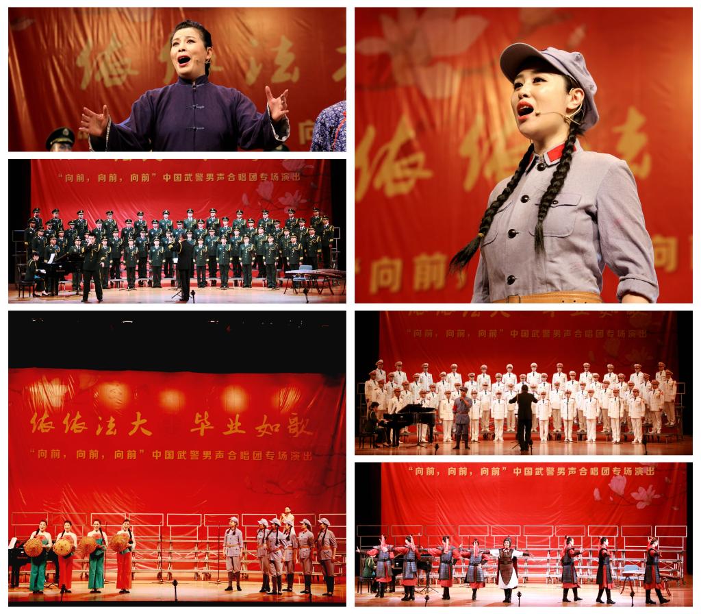 由校团委主办,校艺术团承办,中国武警男声合唱团应学校邀请,在毕业季为2017届毕业生及全校师生带来的“依依法大·毕业如歌”2017届毕业音乐会暨“向前向前 向前”中国武警男声合唱团专场演出圆满举办。中国人民解放军军乐团原团长、九三大阅兵千人合唱团团长兼总指挥、中国音协管乐学会主席、中国音乐协会理事、国家一级指挥于海担任本次演出指挥。