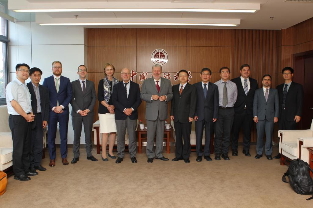 参加会见的还有艾伯特基金会理事长施密特(Roland Schmidt)博士、国际部部长克斯佩尔(Christiane Kesper)女士、会长助理科恩曼(Toben Kornmann)先生、驻中国代表兼北京办主任仁恺(Christoph Pohlmann)先生、上海办主任潘启泰(Stefan Pantekoek)先生、北京办项目经理周汇敬先生。我校法学院院长焦洪昌教授、教务处副处长王强副教授、比较法学研究院副院长兼中德法学院中方院长谢立斌教授、德方副院长Clemens Richter博士和国际合作与交流处副处长吕勇陪同会见。