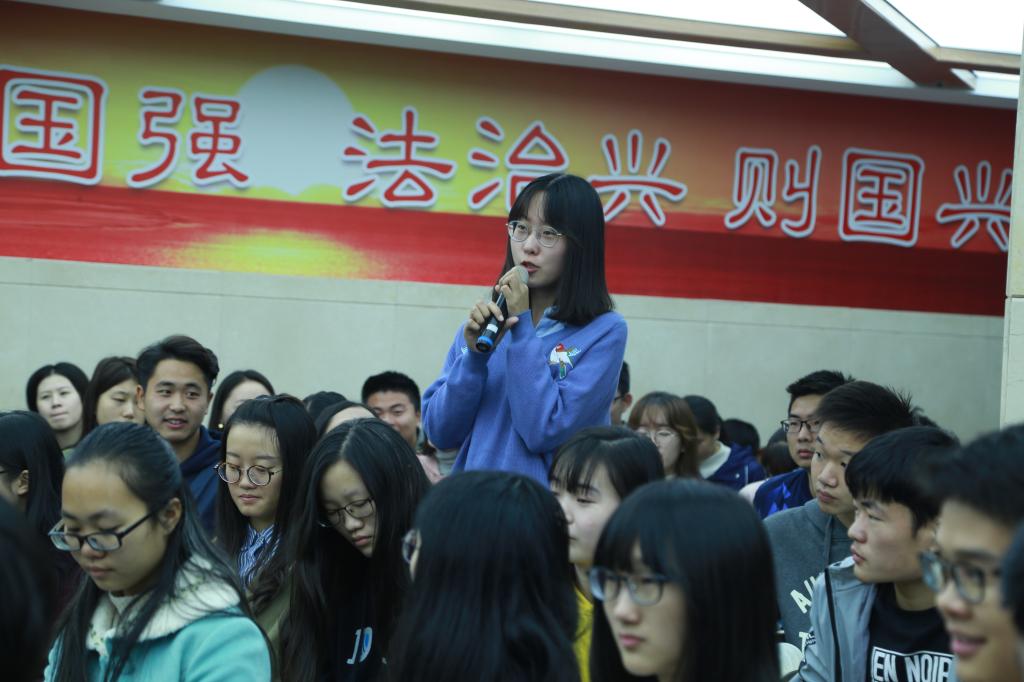 国际法学院1608班的白沁弋更多地感受到国家在法制建设中的发展:“看到我国在依法治国方面取得的卓越进展,作为法大的学子,我们更应该以成为社会主义法制人才为目标,孜孜不倦地汲取知识,不断提升综合素质,为实现中华民族伟大复兴的中国梦贡献自己的力量!”