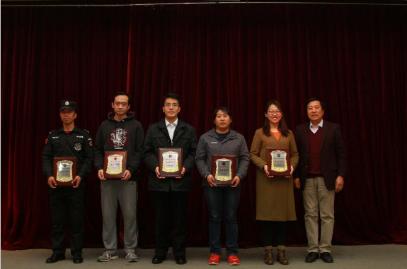 表彰决定宣读完毕后,现场举行了颁奖仪式,并播放了先进集体和个人事迹视频。视频向大家展示了先进集体和个人在自己岗位上踏实认真工作的身影。保卫处、校医院、图书馆和物业管理服务中心的获奖代表先后做了先进事迹报告。他们细致地介绍了自己的工作内容,并由衷地表达了对岗位领导与同事的感谢,纷纷表示今后一定会不忘初心,继续前进。