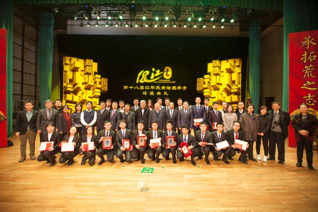 在热烈的掌声中,江平先生为全体获奖者颁发奖牌和证书,并与嘉宾合影留念。据悉,在本届江奖评选过程中,民商经济法学院坚持把评选考试和学风建设相结合,在组织好初试、复试和面试基础上,先后举办了商法论坛、往届江奖获奖者主题讲座、我与江奖专题采访等多种类型的活动,力求以江奖评选和颁奖为契机,营造浓郁的校园学术氛围。