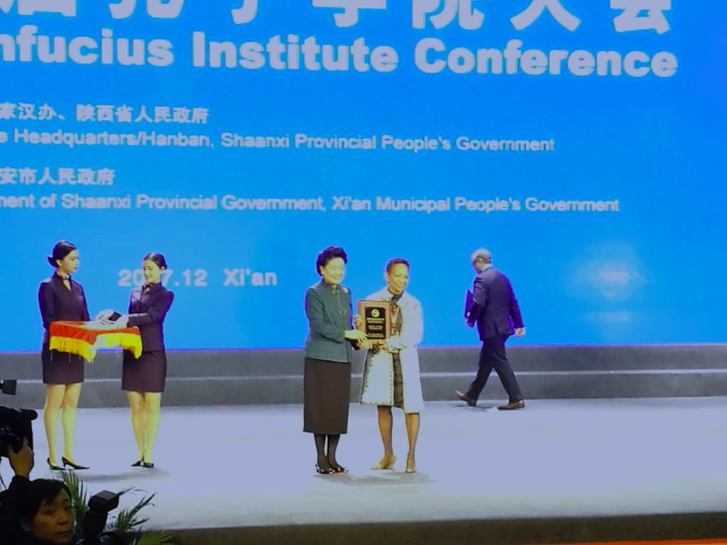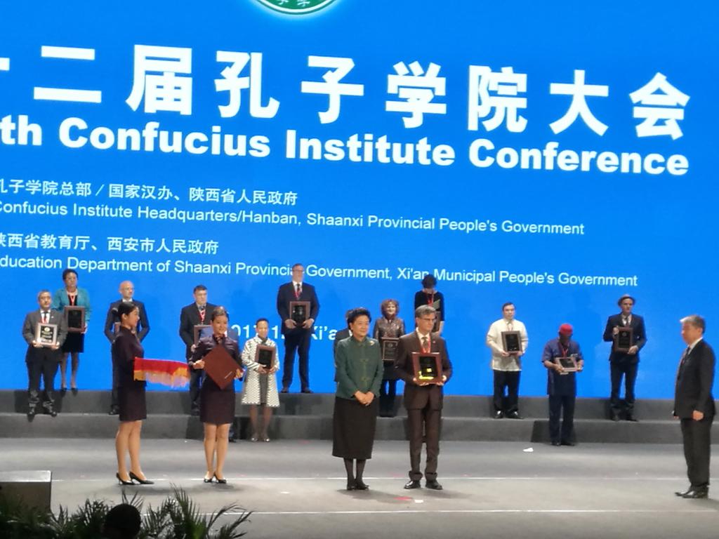 12月12日上午,第12届全球孔子学院大会在西安开幕,国务院副总理、孔子学院总部理事会主席刘延东出席会议,作主旨演讲,并为全球25个先进孔子学院等奖项颁奖。我校共建罗马尼亚布加勒斯特大学孔子学院、巴巴多斯西印度大学凯夫希尔分校孔子学院同时荣获“2017全球先进孔子学院”称号,这是我校孔子学院建设发展中的重大历史性突破。