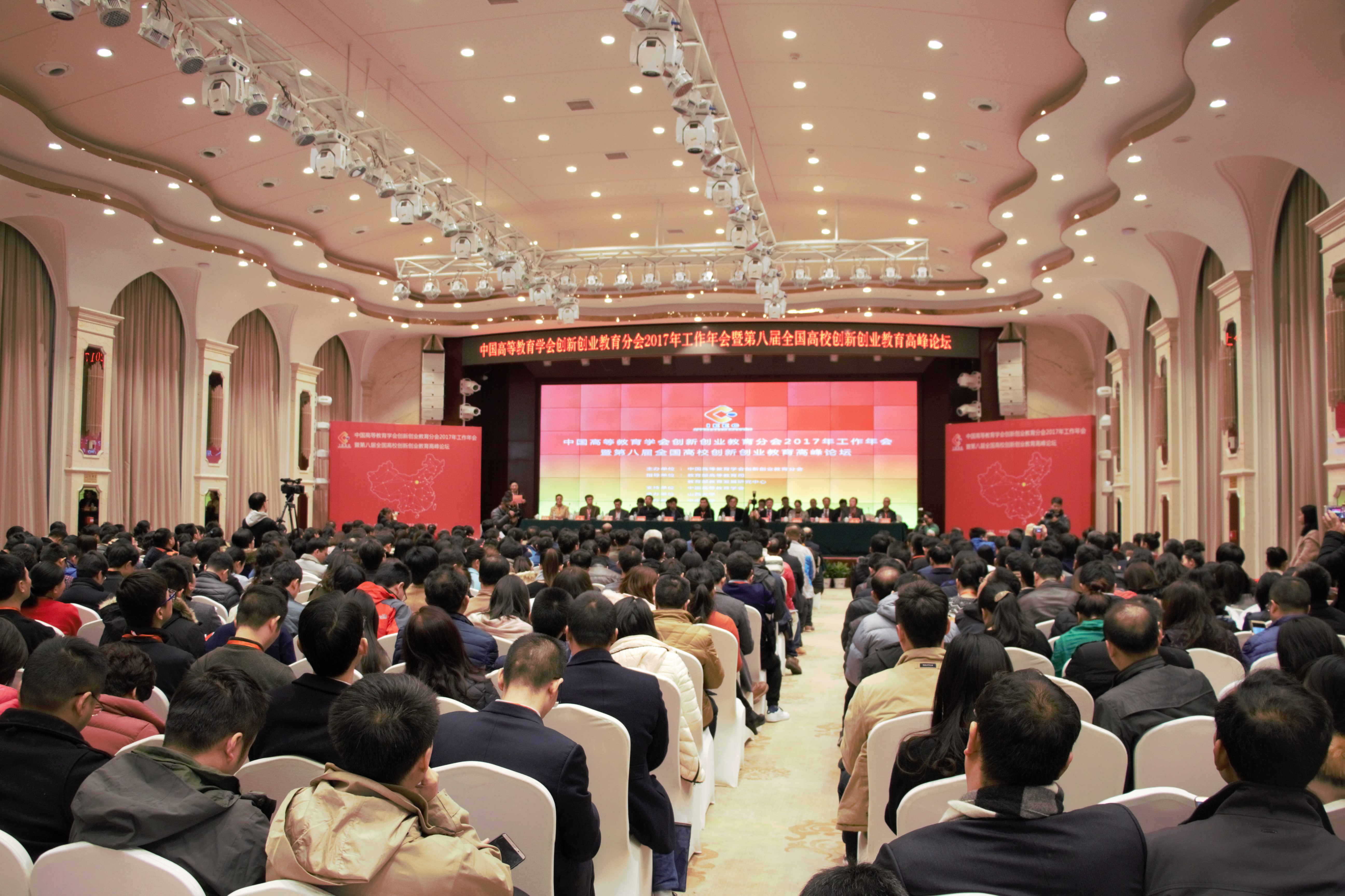 12月7日,中国高等教育学会创新创业教育分会2017年工作年会暨第八届全国高校创新创业教育高峰论坛在山西大学召开。教育部高等学校创业教育指导委员会主任、中国高等教育学会创新创业教育分会会长、中南大学党委书记高文兵,教育部教育发展研究中心副主任韩民,山西省教育厅副厅长王云等领导,创新创业教育分会各会员单位代表及专家学者600余人出席了会议。
