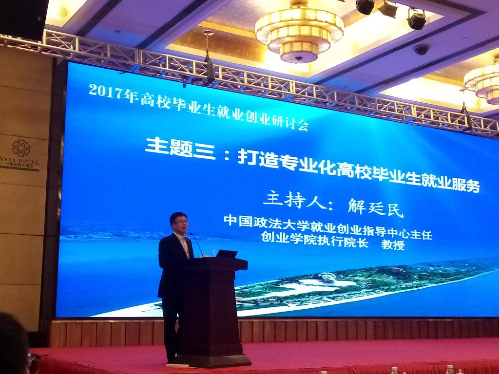 我校学生就业创业指导服务中心主任解廷民、外国语学院分党委书记赵云鹏、马克思主义学院分党委书记阮广宇及法学院辅导员冯威参加了会议。解廷民应邀主持了“打造专业化高校毕业生就业服务”主题分论坛。