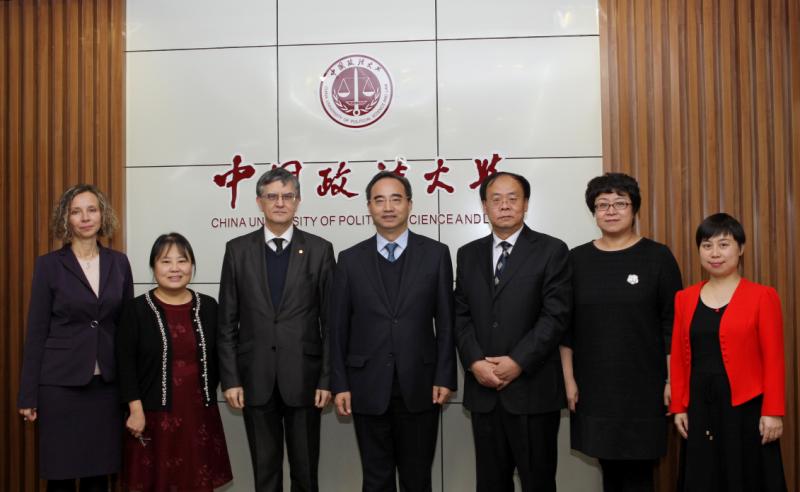 黄进首先对Dumitru校长一行表示热烈欢迎,对我校共建布加勒斯特大学孔子学院荣获“2017全球先进孔子学院”表示诚挚祝贺,并对Dumitru校长及各位理事对孔子学院工作的大力支持以及孔子学院中外方院长及其团队的辛勤付出表示感谢。黄进指出,2017年是法大建校65周年,在法大发展史上是很不平凡的一年,学校发生了很多大事要事:一是5月3日习近平主席考察法大并发表重要讲话,学校师生倍感振奋、备受鼓舞;二是顺利通过了教育部本科教学审核评估工作;三是学校进入国家“双一流”建设计划。为实现 “双一流”建设目标,学校高度重视国际合作与交流,高度重视国际化战略的实施。加强对孔子学院建设和支持力度,是国际化战略的一个重要举措。学校希望以孔子学院为平台,促进广泛交流和深度合作,尤其是在“一带一路”倡议下加强与“一带一路”沿线国家的合作。黄进表示,学校今年入选北京市“一带一路”人才培养基地项目,欢迎布加勒斯特大学师生来法大授课、学习。同时希望通过本次理事会为孔院下一步发展做好规划,把布大孔院越办越好。