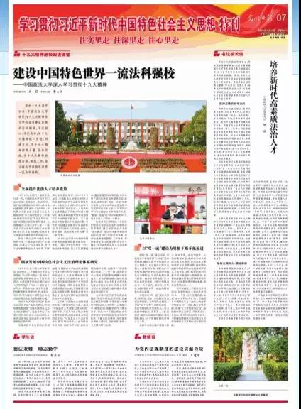 2018年1月1日,《光明日报》新年第一期,第七版“学习贯彻习近平新时代中国特色社会主义思想特刊”,以整版的篇幅对我校学习贯彻党的十九大精神的特色做法进行了报道。
