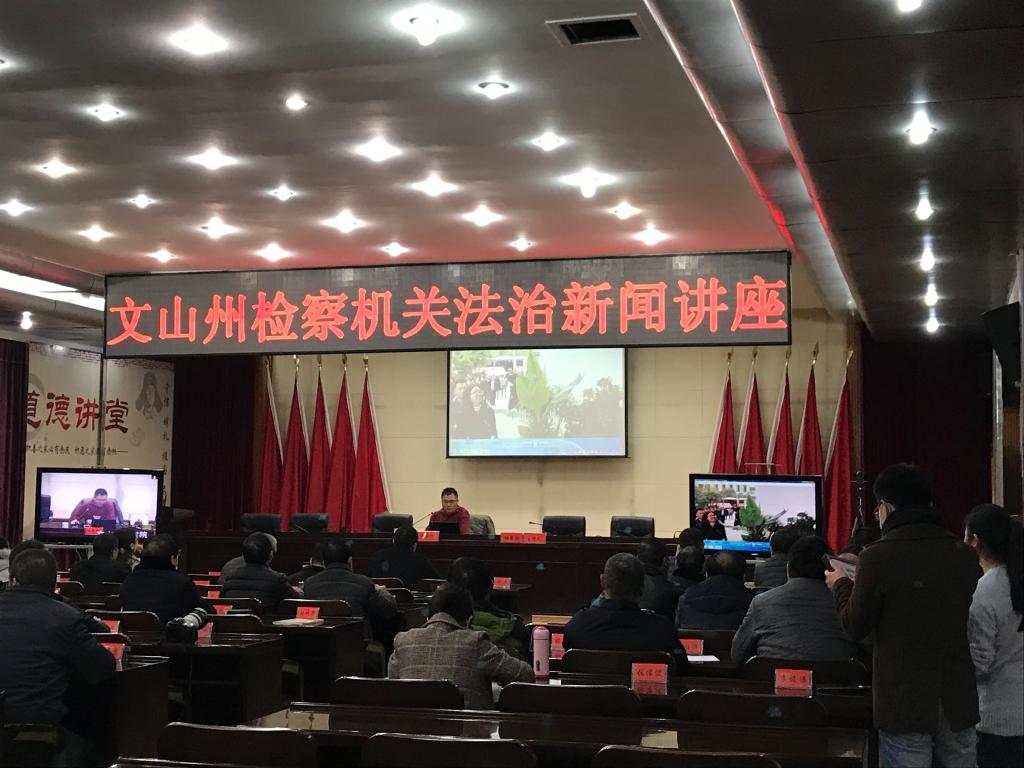本次普法宣传系服务团首次边疆服务工作,活动由学生处研究生工作办公室安排,国际法学院分党委具体落实,服务团一行5名博士生,首先来到文山州检察院与该院相关负责人及有关业务科室干警进行座谈。巩宸宇博士作了《新时代检察新闻写作》讲座、杨关生博士作了《学术论文写作指导与规范》讲座、李旭博士作了《民间借贷与非法集资类犯罪》讲座。服务团还就“边境地区刑事司法协作问题”与文山州检察院有关部门达成课题研究共识,相关研究计划将于今年内启动。