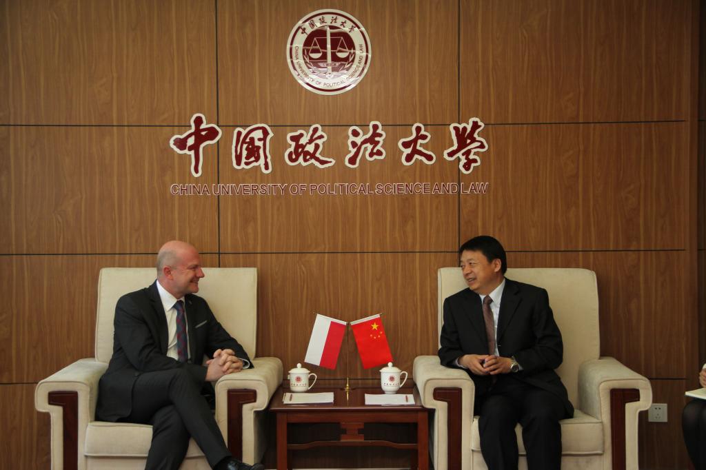 马怀德首先欢迎Duszczyk一行来访,并就我校办学历史、办学规模、院系设置以及国际合作情况,尤其就与“一带一路”沿线国家的合作情况进行了介绍。值此习近平总书记访问法大一周年之际,马怀德还特别回顾了总书记访问我校时对“北京-华沙大学生论坛”的关切。他表示,华沙大学是法大的重要战略合作伙伴之一,双方已在学生交流、学术合作等方面开展深入合作,为两校拓展合作范围、深化合作层次提供了重要基础,希望未来有更多华沙大学师生到法大进行学术交流活动。