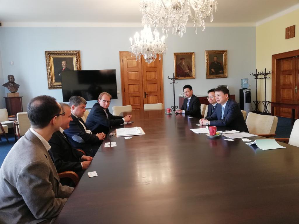 在捷克,代表团访问了捷克历史悠久的著名学府--查理大学,与负责国际事务的副校长Jan Škrha、国际处处长 Lenka Škrábalová等会面。双方回顾了2009年以来的良好合作,就在已有法学交流基础上提升合作关系,开展政治学、经济学等其他社会学科领域的合作,进行青年教师学术交流、加强学生培养等各类合作进行了深入商谈。代表团还访问了查理大学法学院,与院长Jan Kuklik、国际事务副院长Milan Damohorsky、法学院外事主任 David Kohout等进行了工作商谈,双方就在现有学生交换基础上,开展教师短期授课、行政人员交流、博士生联合培养、学生短期项目、攻读硕博学位、以“一带一路”倡议为主题开展学术对话等进行了广泛了交流,并一致同意在此基础上签署新的合作协议。
