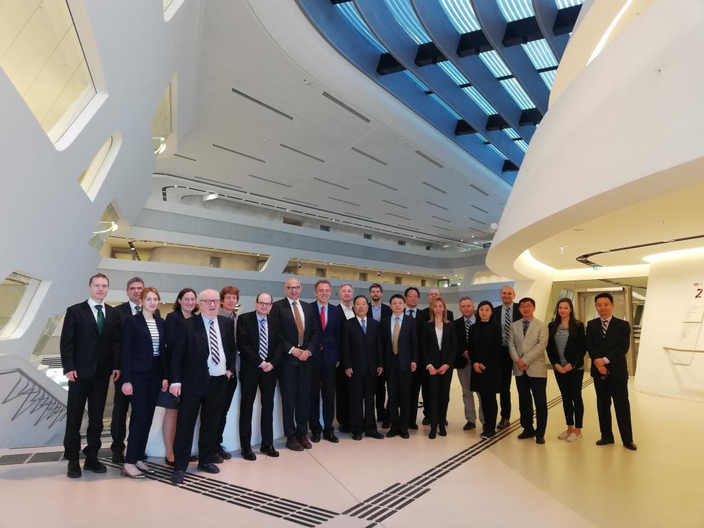 在奥地利,代表团参加了由中欧法学院欧方合伙人之一维也纳经济大学承办的合伙人大会和联合管理委员会会议。司法部原部长、中欧法学院中方管理委员会主席张福森、委员马怀德以及维也纳经济大学副校长Michael Lang分别致辞,中方合伙人国家检察官学院、清华大学法学院与十余所欧方合伙人院校的共计二十余名代表出席了会议。会议听取了学院联席院长所做的工作报告,讨论了近期工作计划和未来可持续发展等各类议题,并就各项工作及活动安排达成初步一致。