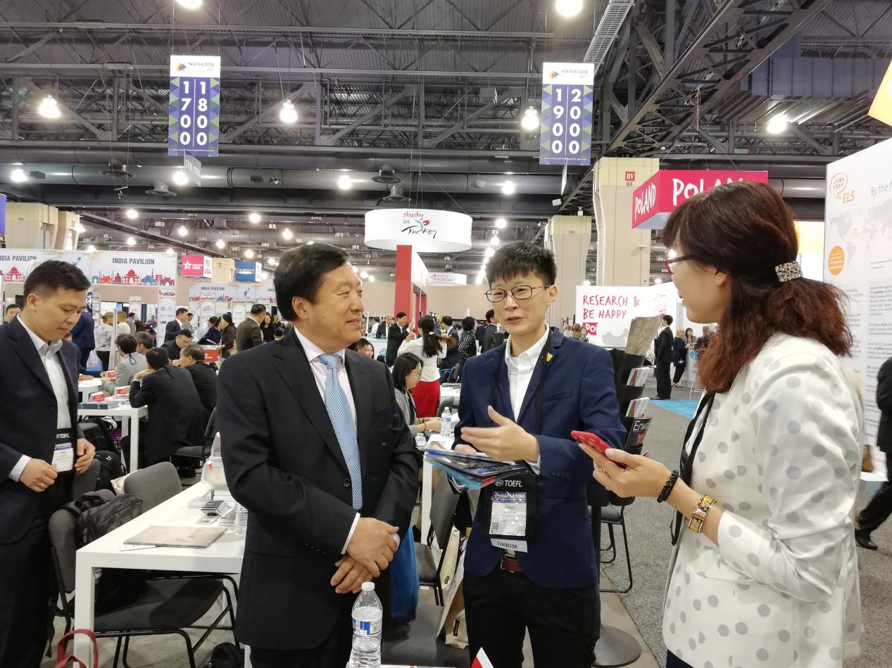 期间,我校代表团分别出席了NAFSA年会开幕式大会、NAFSA教育展、中国驻纽约总领事馆在费城举办的“中国招待会”等活动,听取了美国前第一夫人劳拉·布什的大会发言,旧金山州立大学副校长、NAFSA原副主席吴彦伯关于“NAFSA和高等教育国际化”为主题的报告和其他相关学术活动。展会期间,我校代表团分别接待或走访了美国加州大学伯克利分校、印第安纳大学布鲁明顿分校,日本东京大学、早稻田大学,韩国成均馆大学、汉阳大学,俄罗斯国立研究大学高等经济学院,荷兰莱顿大学,爱尔兰科克大学,以及香港大学等各个国家和地区的几十个新老合作伙伴的代表,就夯实已有合作、提升合作层次、扩大合作范围、建立新的合作伙伴关系等事宜进行了深入商谈和交流。