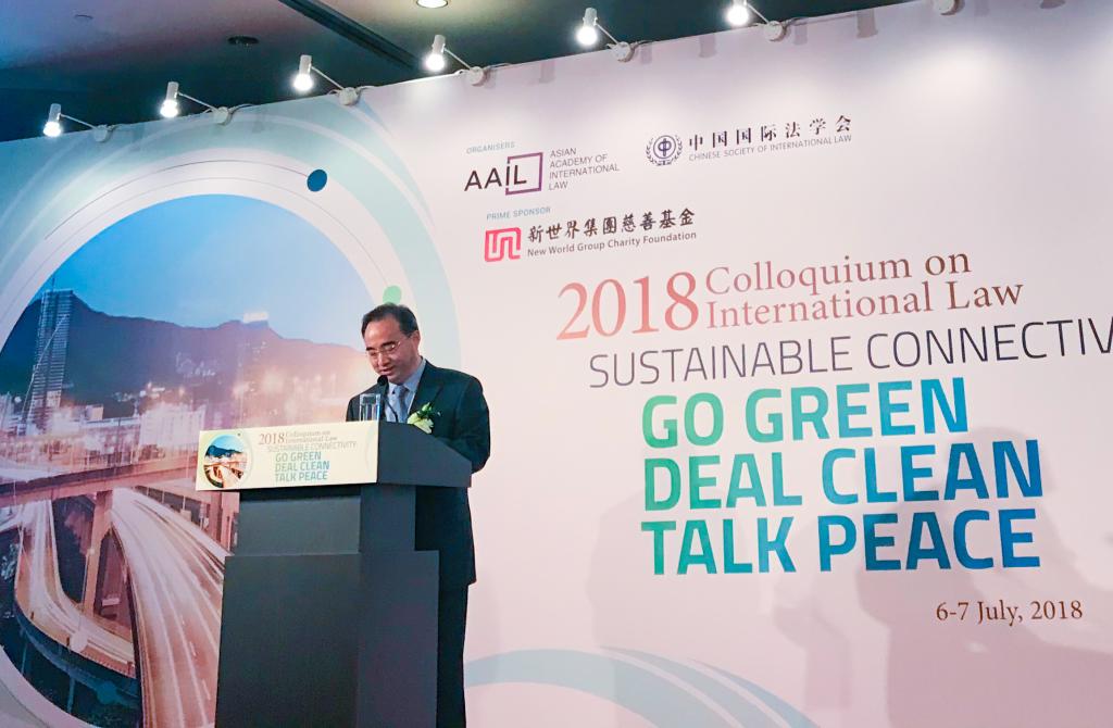 由中国国际法学会(CSIL)和亚洲国际法律研究院(AAIL)联合主办的“2018国际法论坛”,于2018年7月6日至7日在香港举行,这是两者合作举办的第三届国际法论坛。本届论坛以“连通畅行:保环境、营正商、解纠纷”(Sustainable Connectivity: Go Green Deal Clean Talk Peace)为主题,集中探讨近年来企业在跨国跨区营商时,经常遇到的国际法问题。