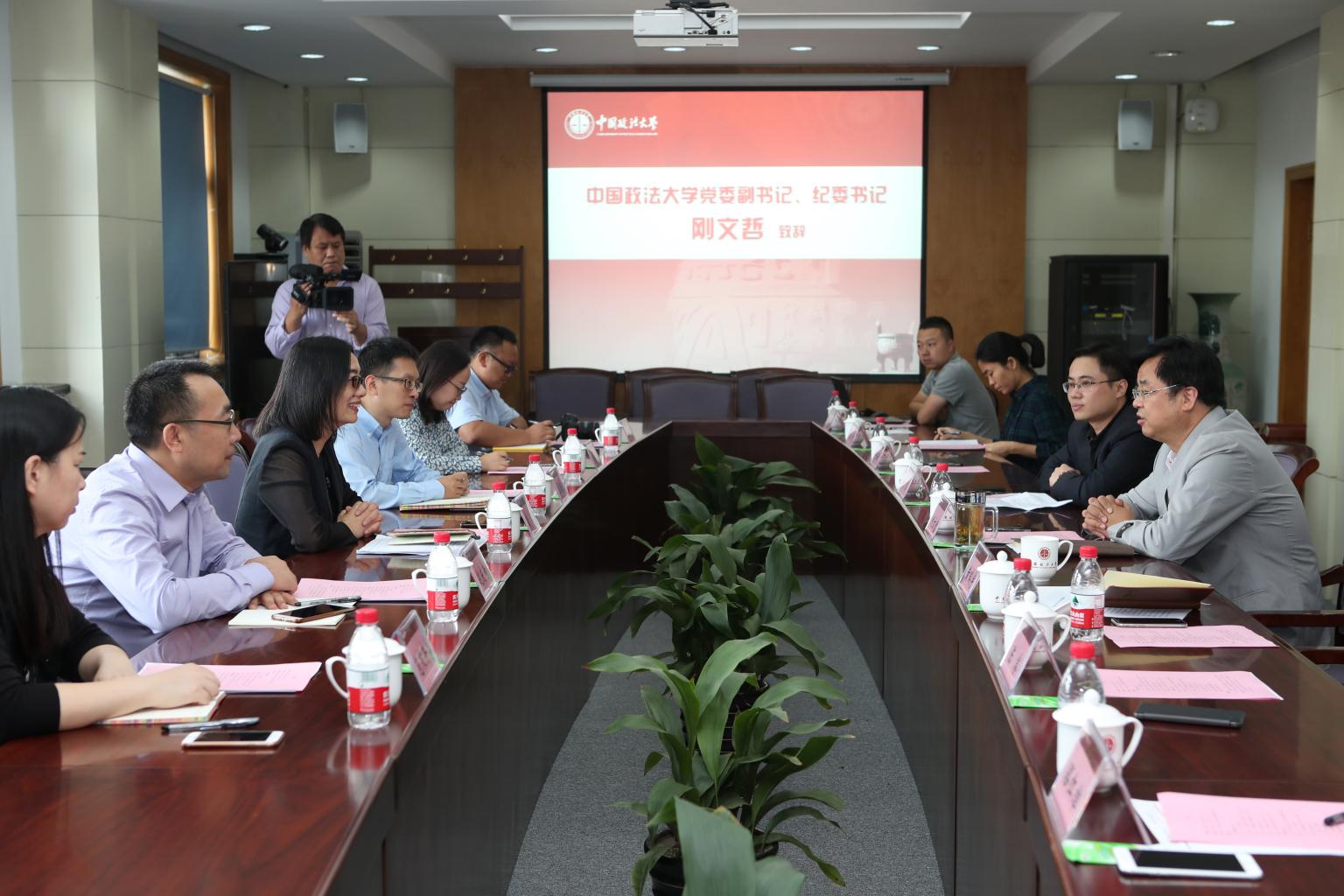 (记者 骆红维)9月20日,华东政法大学党委副书记唐波,党委常委、宣传部部长、新闻中心主任虞潇浩一行6人来访我校,就高校意识形态工作、思想政治工作等方面内容与我校相关部门进行座谈。我校党委副书记、纪委书记刚文哲及相关部门负责人参加座谈。