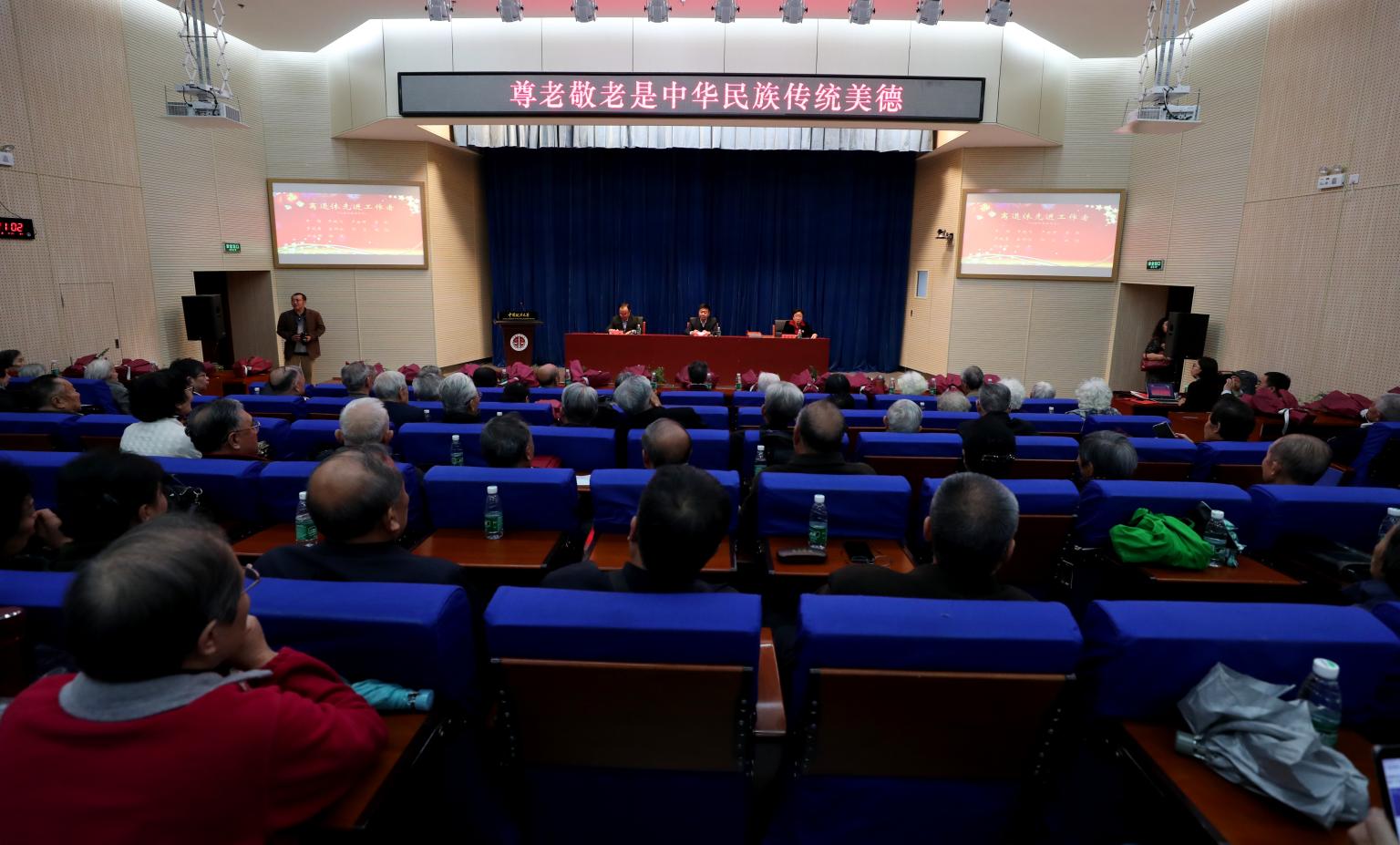 (记者王安琪 实习通讯员郭心悦)金风习习,秋意融融,10月16日上午,我校于学院路校区综合科研楼学术讲堂举行2018年重阳节庆祝表彰大会。校党委书记胡明,校党委副书记高浣月,副校长徐扬同我校离退休教职工代表、受表彰集体、个人和家庭,优秀校友代表及相关部门负责人齐聚一堂,共庆佳节。大会由高浣月主持。