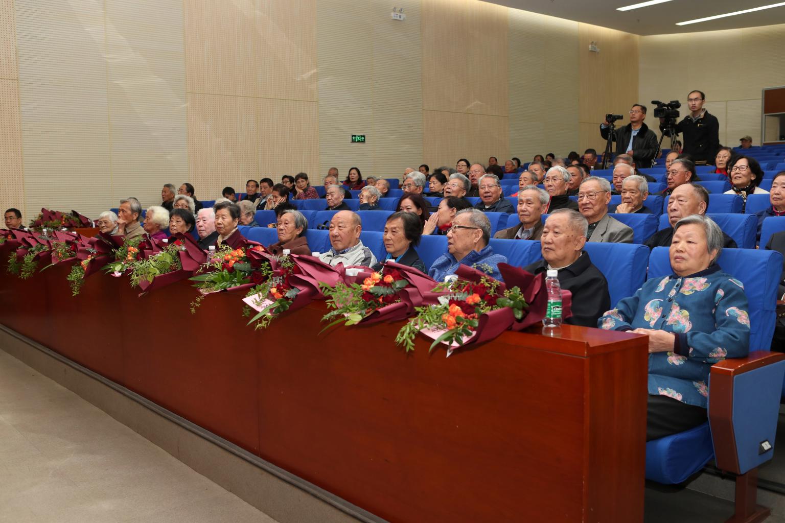 高浣月宣读了70、80、90岁整寿寿星名单,校领导分别为各位寿星献花,向他们表示亲切的节日问候和衷心的祝贺。