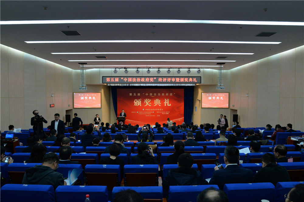2018年10月28日,第五届“中国法治政府奖”终评评审暨颁奖典礼在北京举行,来自全国各地的31个入围单位的100余名代表及30多家新闻媒体出席了颁奖典礼。本届“中国法治政府奖”终评评委会由来自理论界、实务界、媒体界的13位领导和专家组成。经过评审,15个单位获得“中国法治政府奖”,16个单位获得“中国法治政府提名奖”。