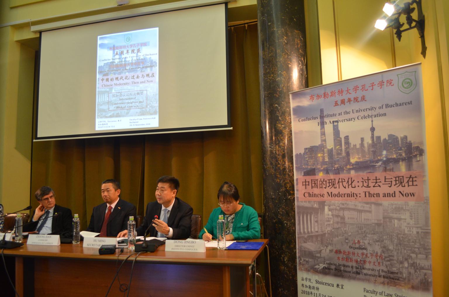 当地时间11月24日上午,“中国的现代化:过去与现在”国际会议暨布大孔院五周年院庆在布加勒斯特大学法学院隆重举办。