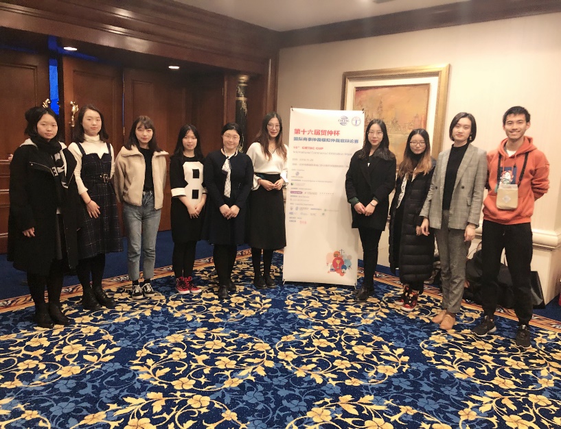 本届比赛共吸引了来自全国著名高等院校56支代表队的500余名选手,并邀请来自10多个国家和地区,100余位中外仲裁员、律师和法学教授担任评委。全部赛程所包括比赛多至119场。我校代表队由国际法学院车路遥老师担任赛队教练,李晶晶、董悦、罗星语、韩奕新、周素华、钱智德、黄雅颂、程子璇、赵梁宇、张苇航、赵尔雅、方淑馨、杨伊宁、郭桦荣、丁思涵、苏汉廷为队员。