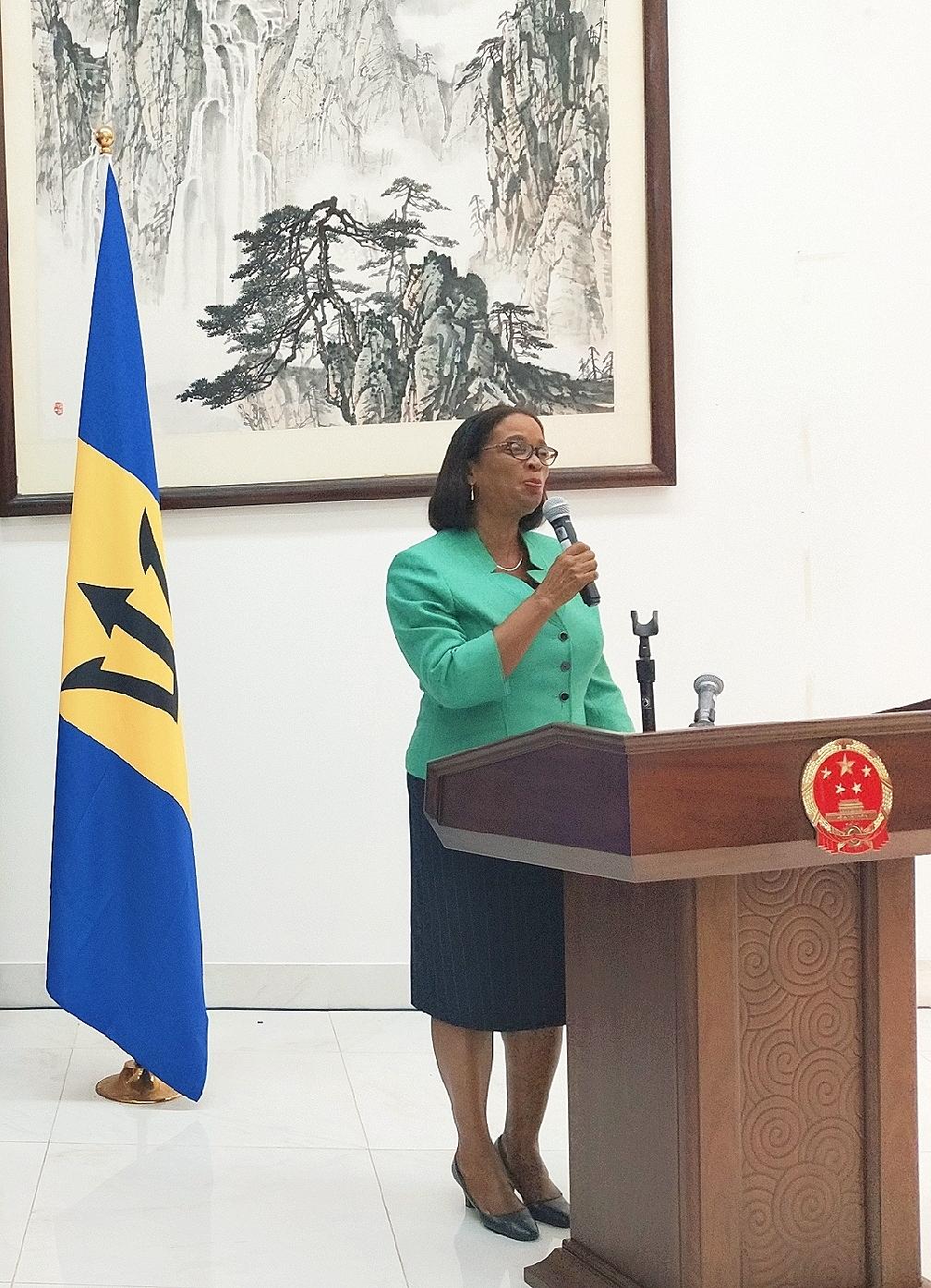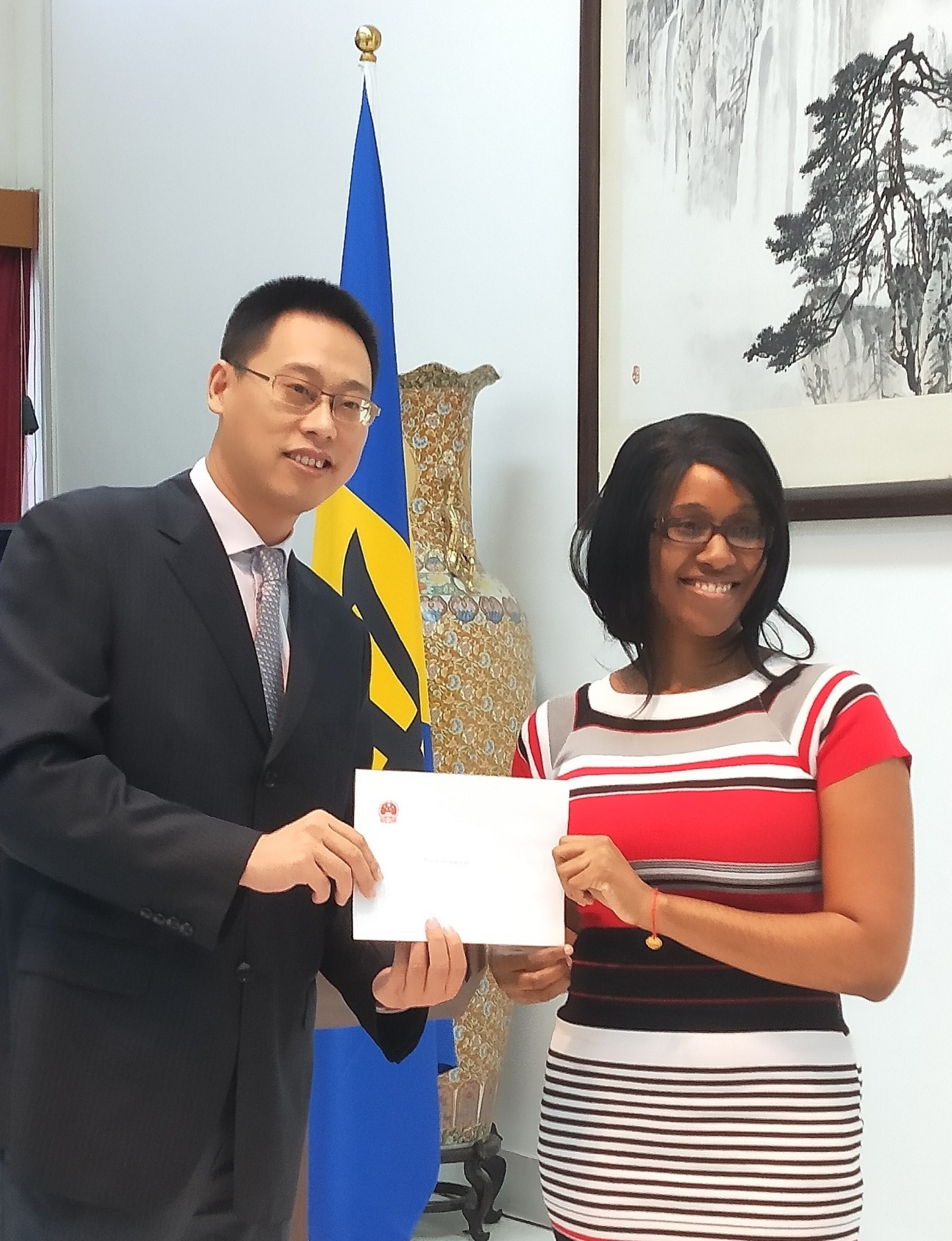巴巴多斯当地时间11月23日下午,中国驻巴巴多斯大使奖学金颁奖典礼成功举办。中国驻巴巴多斯大使馆代办邹熹先生,巴巴多斯外贸部部长汉·桑德拉·赫斯本兹女士(Ms.Hon.Sandra Husbands),教育、技术和职业培训部国会秘书、议员罗梅尔·斯普林格博士(Dr.Romel Springer),孔子学院中外方院长宋庆宝先生和大卫·布布利亚先生(Mr.David Bulbulia)出席本次活动。西印度大学凯夫希尔分校孔子学院全体教师、5名获奖学生及其父母等近60人参加了此次颁奖活动。