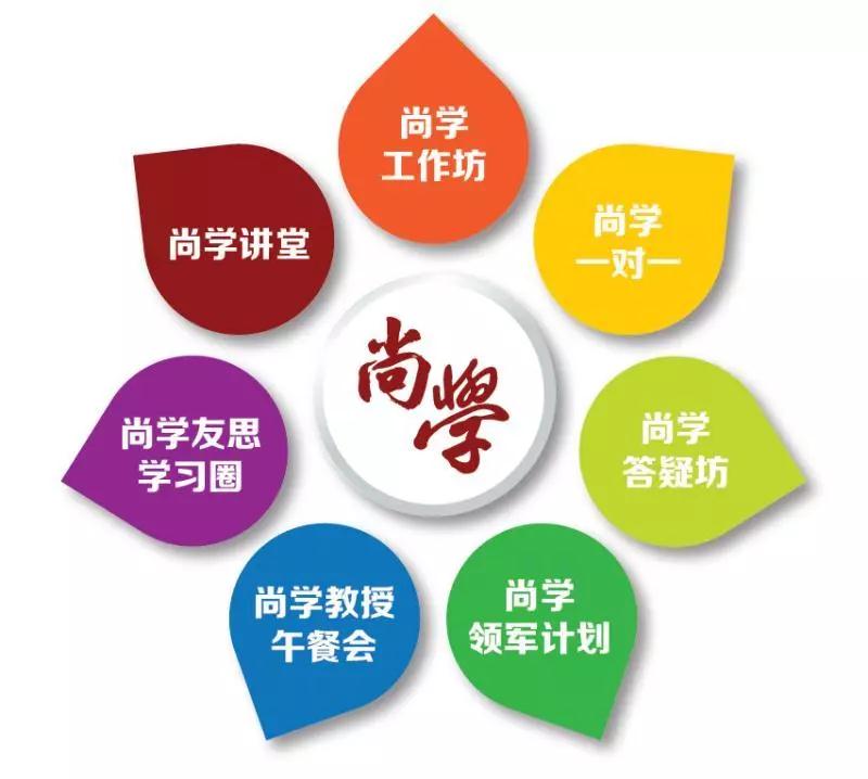 (“尚学法大”涵盖七大项目,分别为尚学讲堂、尚学工作坊、尚学一对一、尚学答疑坊、尚学领军计划、尚学教授午餐会和尚学友思学习圈。 图片来源:学生处)