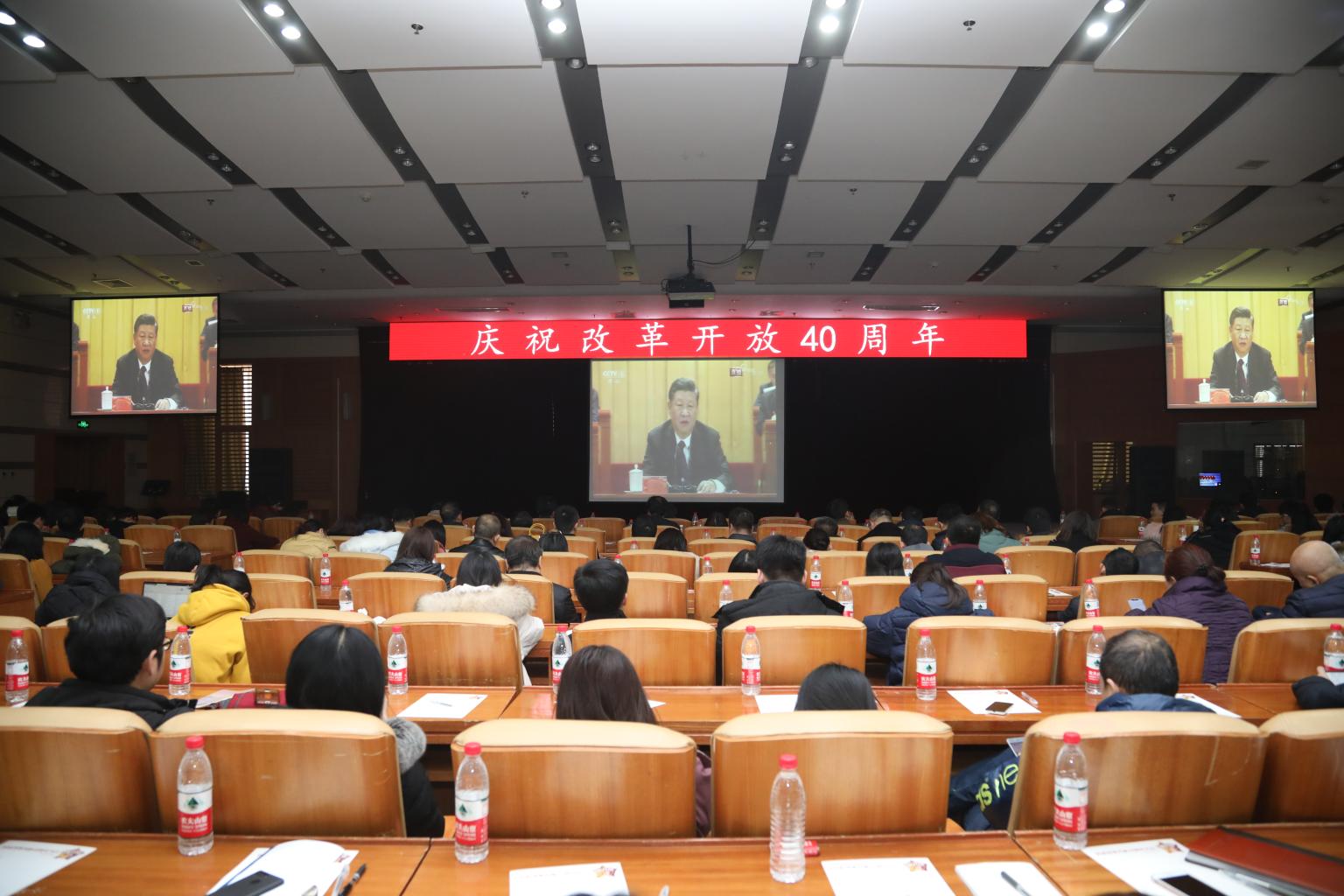 校党委书记胡明指出,习近平总书记在庆祝改革开放40周年大会上发表的重要讲话,内涵丰富、思想深邃、博大精深、催人奋进。全面总结了改革开放40年来取得的伟大成就和宝贵经验,系统提出了新时代新阶段全面深化改革的指导思想和行动纲领,为我们进一步拥护改革、支持改革、推动改革指明了方向。“方向决定道路,道路决定命运”,改革开放40年的经验表明,始终坚持中国共产党的领导,坚定不移走中国特色社会主义道路是改革开放取得成功的根本保证。“改革为了人民,改革依靠人民”,改革开放40年的经验还表明,坚持人民立场是改革开放取得成功的价值导向。40年众志成城、砥砺奋进,正是党的坚强领导、全国人民的勠力同心,书写了国家和民族发展的壮丽史诗,实现了我国从“赶上时代”到“引领时代”的伟大跨越。“改革开放只有进行时,没有完成时”,我们要把全面深化改革作为新时代坚持和发展中国特色社会主义的根本动力,不断将改革向更深层次更高水平推进。教育是改革开放的先行者、受益者、助力者,高等教育要积极主动顺应新时代新任务新要求,继续增强改革创新意识、加大综合改革力度,加快“双一流”建设、促进内涵式发展,为培养德智体美劳全面发展的高素质人才贡献力量。